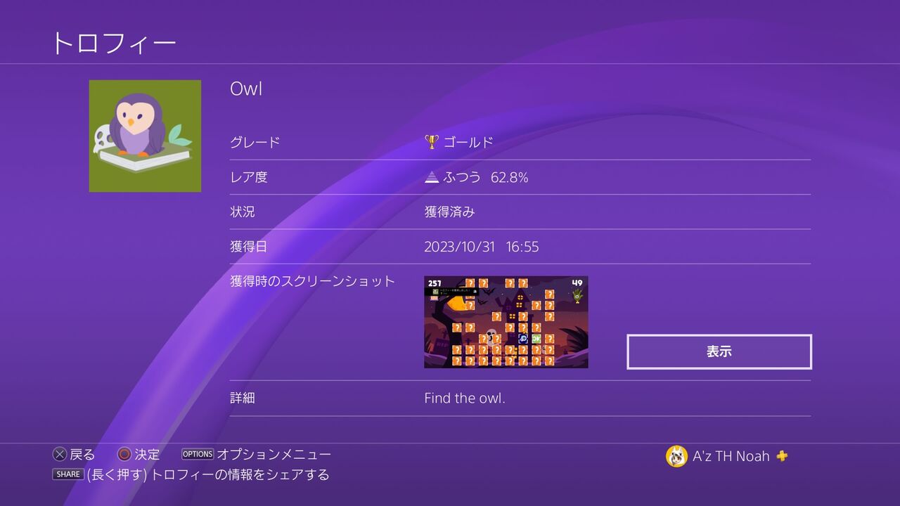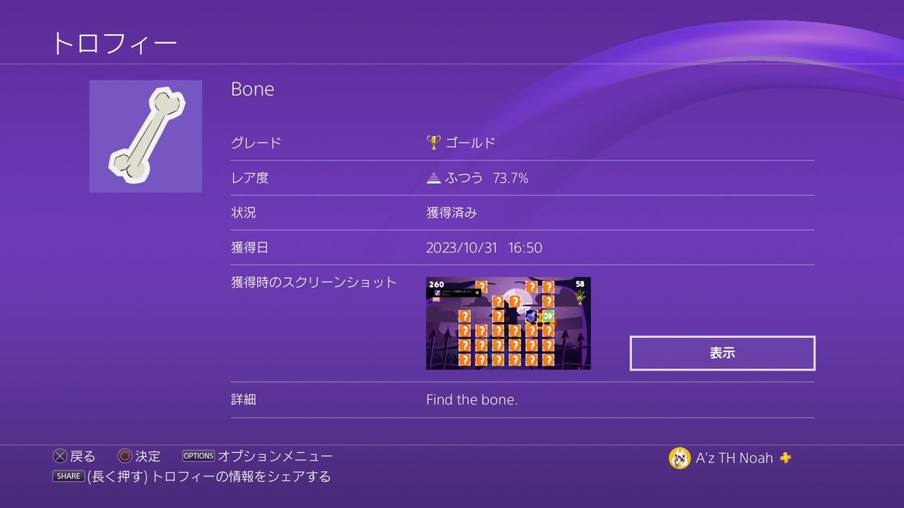 ということで、トロフィーを見ていこう。