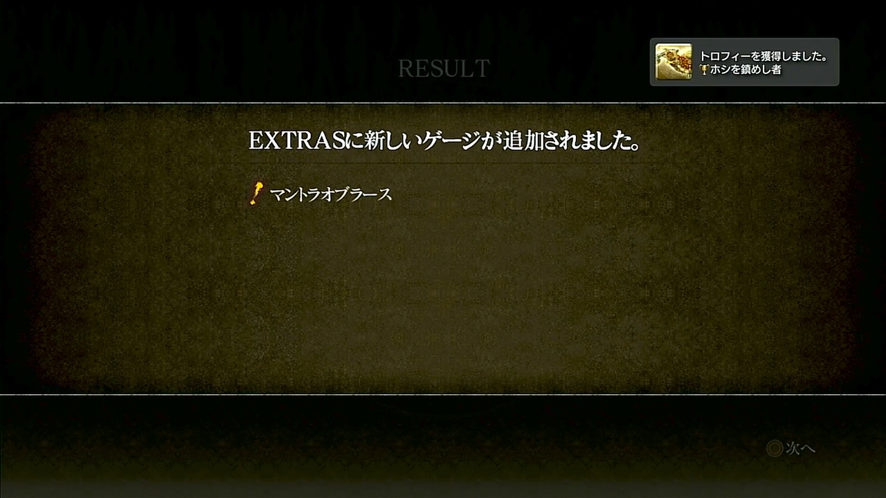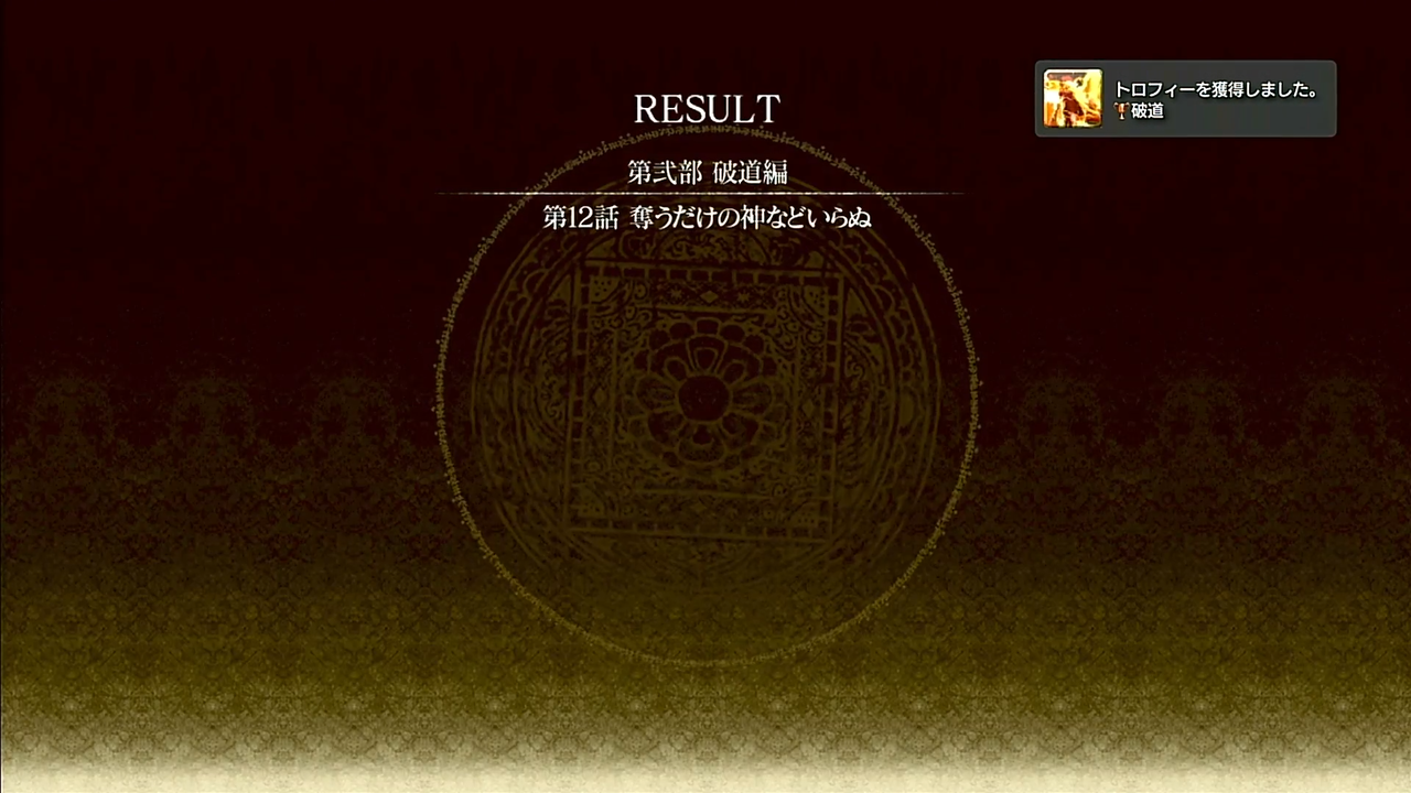 全話Sランク取れみたいなトロフィーがありますが、チート性能の装備が手に入るので、それ使ってれば問題なく取れるかなって感じです。