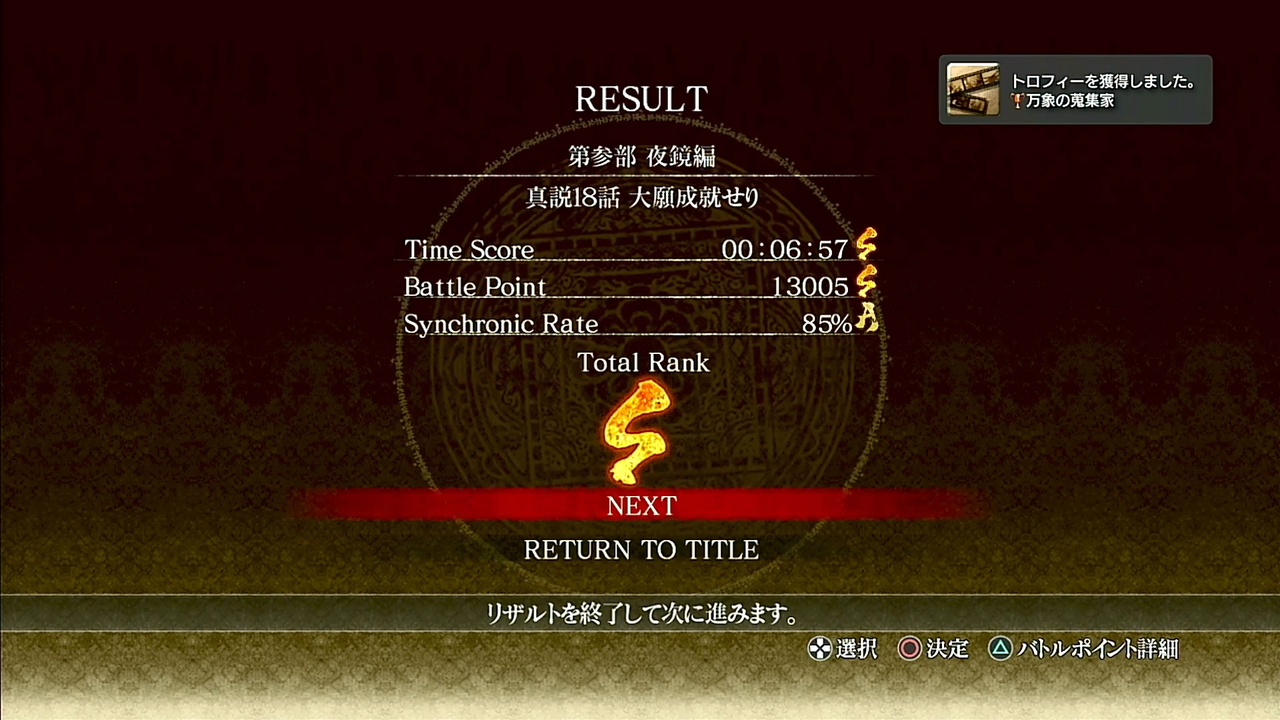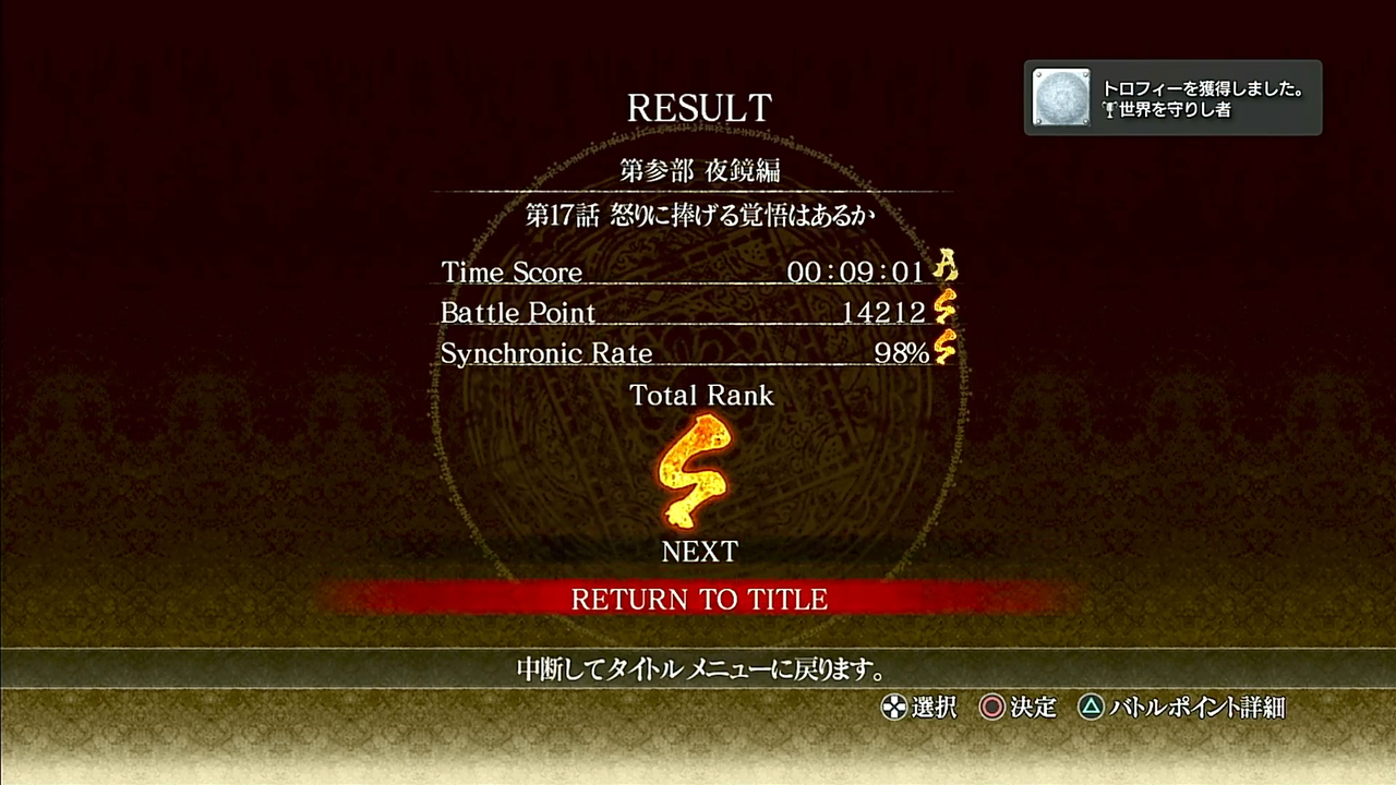 難易度NORMALでの全エピソードのトータルランクが全てS。