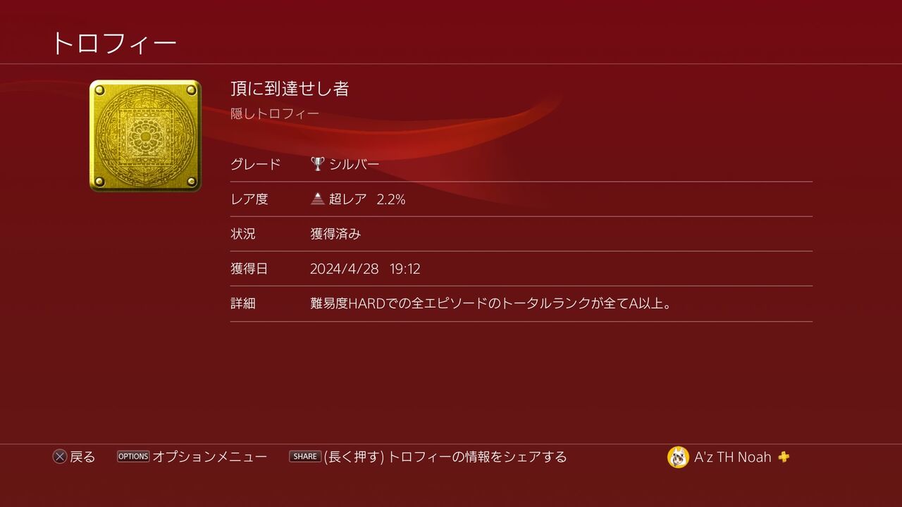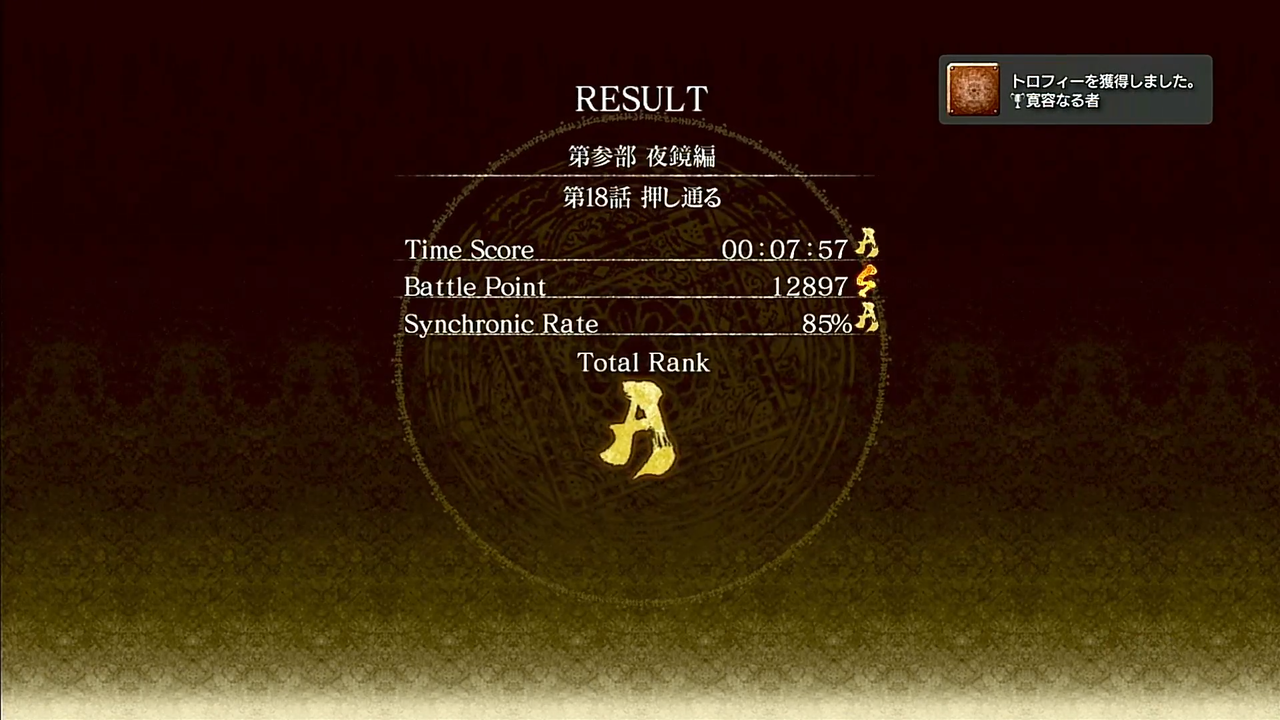難易度NORMALでの全エピソードのトータルランクが全てA以上。