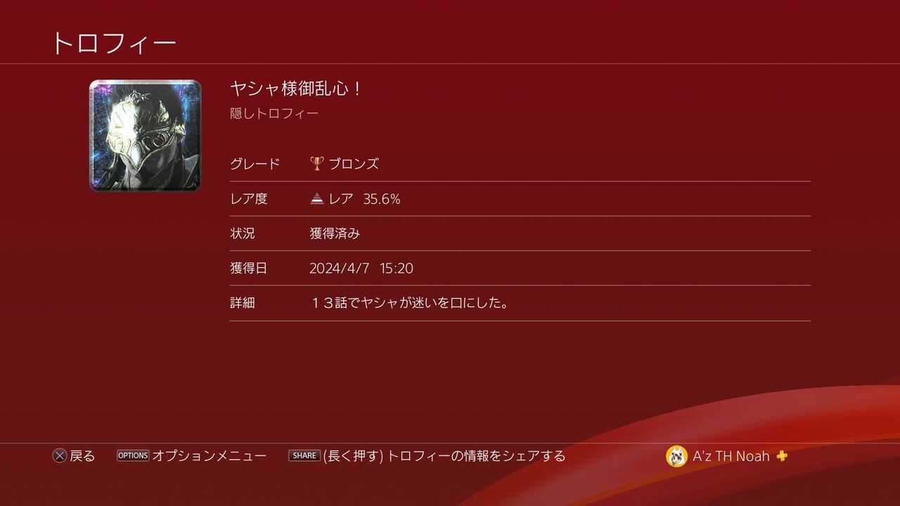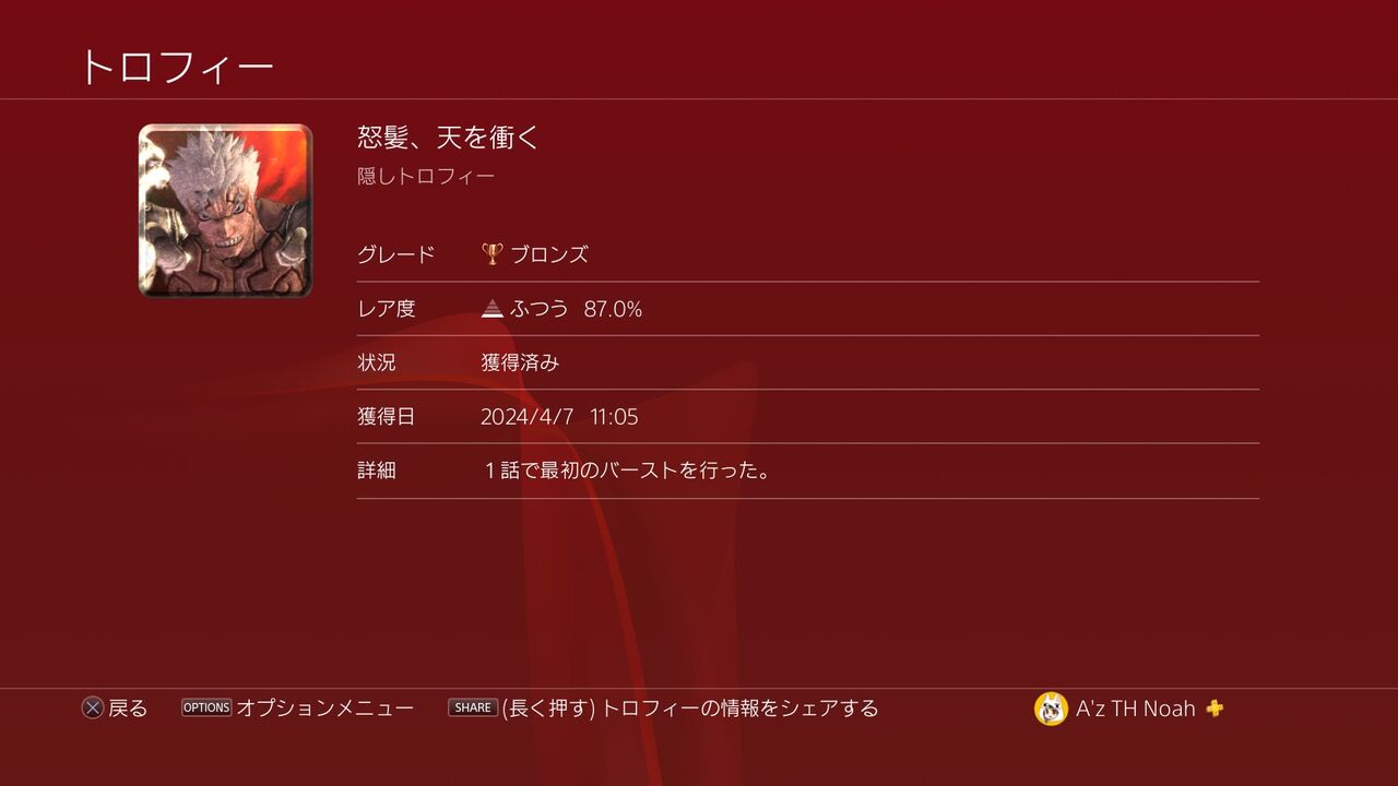 という感じで、トロフィーを見ていこう。