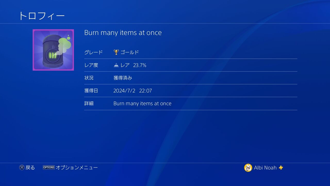 一回の焼却で、多くのアイテムを燃やすと獲得できる。