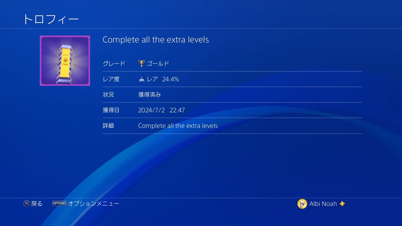 ・Complete all the extra levels(ゴールド)