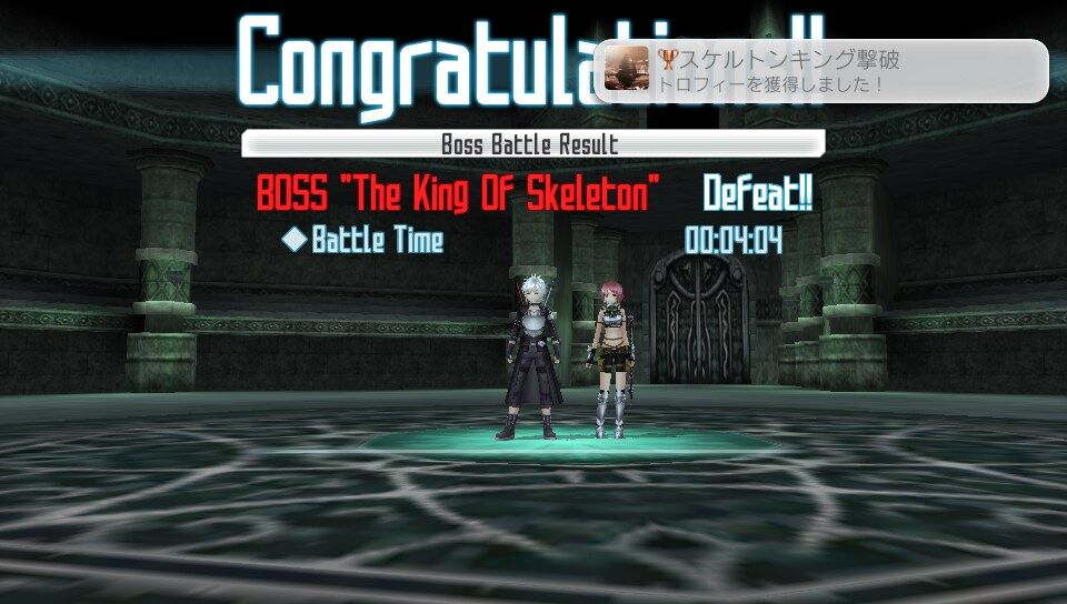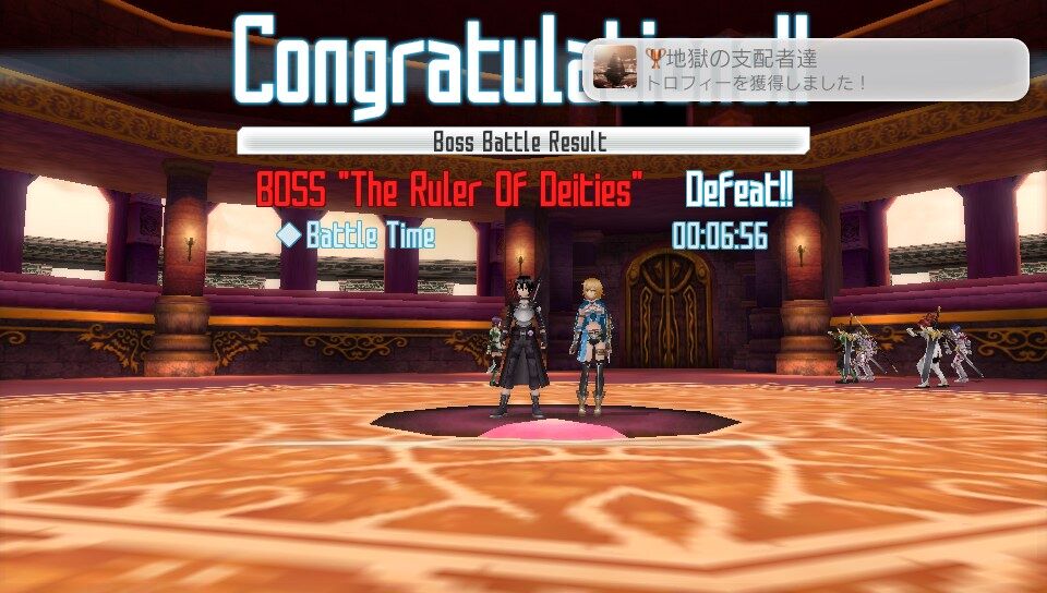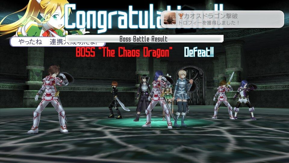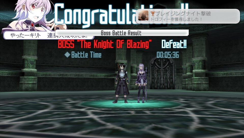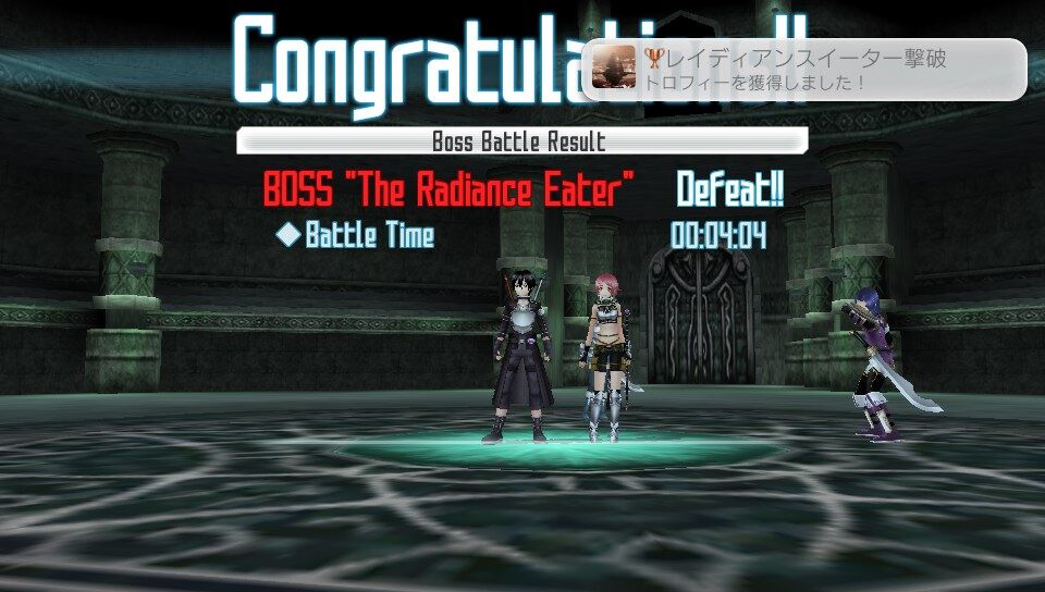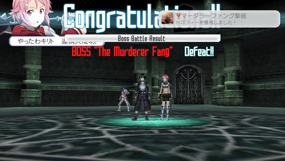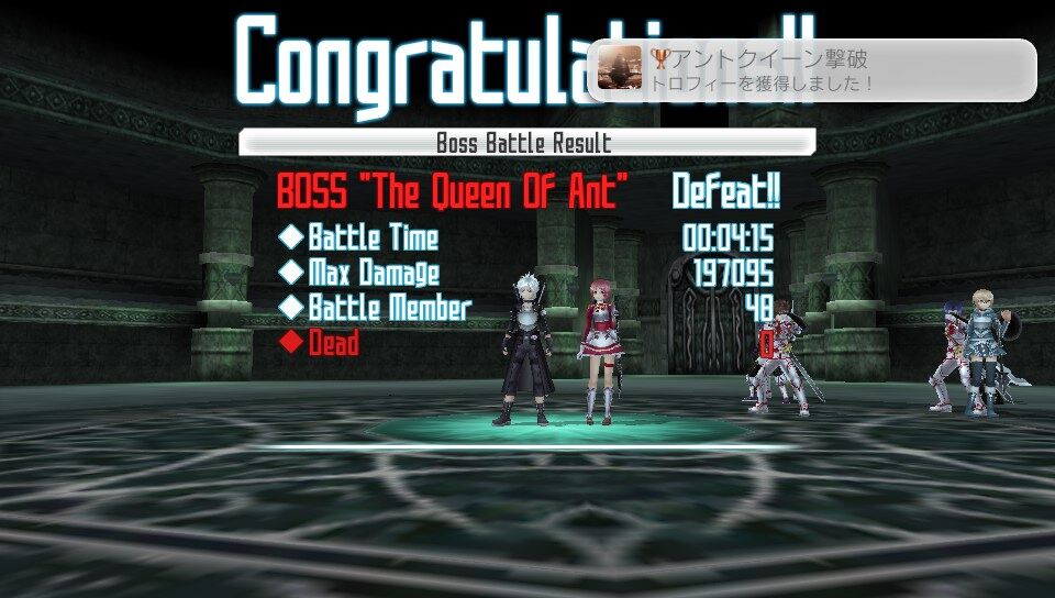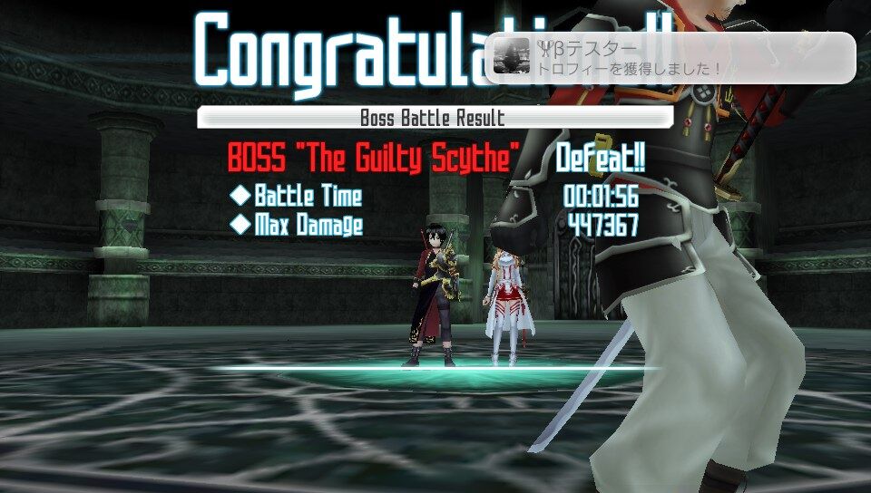 またアインクラッド編において、ボス討伐後のリザルトでLast Attackの欄に自分の名前が入っていることとDeadの欄が「0」になっていることを確認すること。
