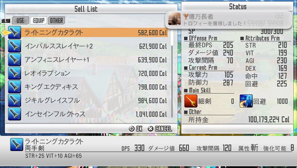 所持コルを一億貯める