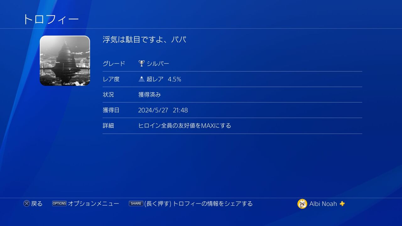 僕のトロファー史上で最初に詰んだタイトルでしたので、トロコンできたことがかなり感慨深かったです。