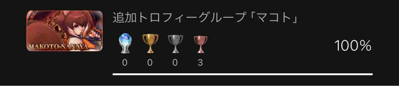 今回は追加キャラクターとして実装されたマコト=ナナヤについてのトロフィーです。