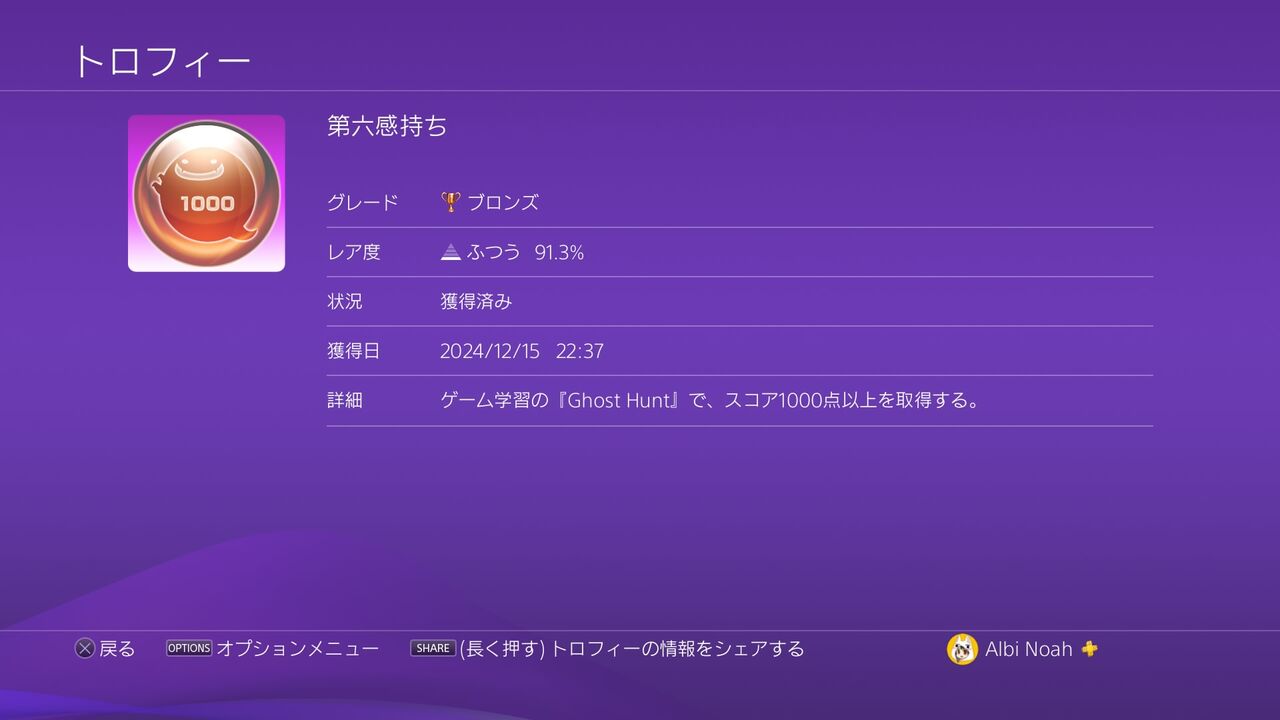 ゲーム学習の『Ghost Hunt』で、スコア1000点以上を取得する。