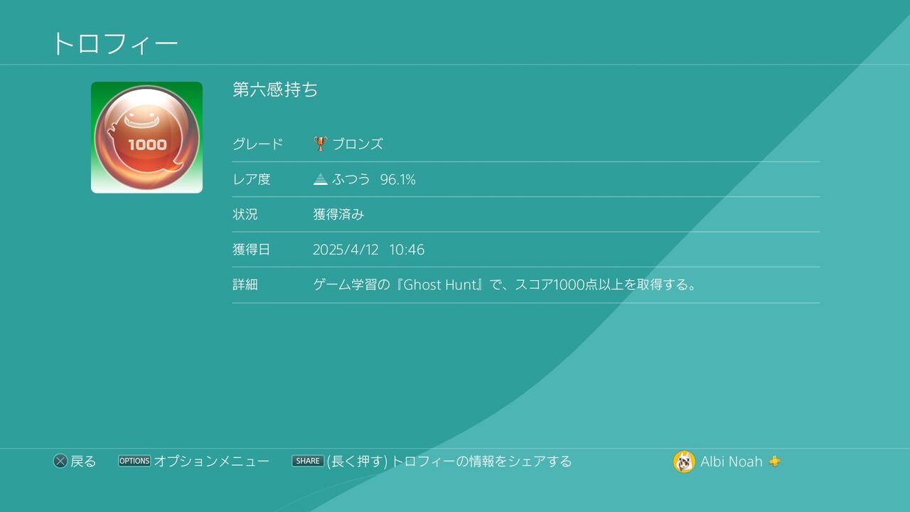 ゲーム学習の『Ghost Hunt』で、スコア1000点以上を取得する。