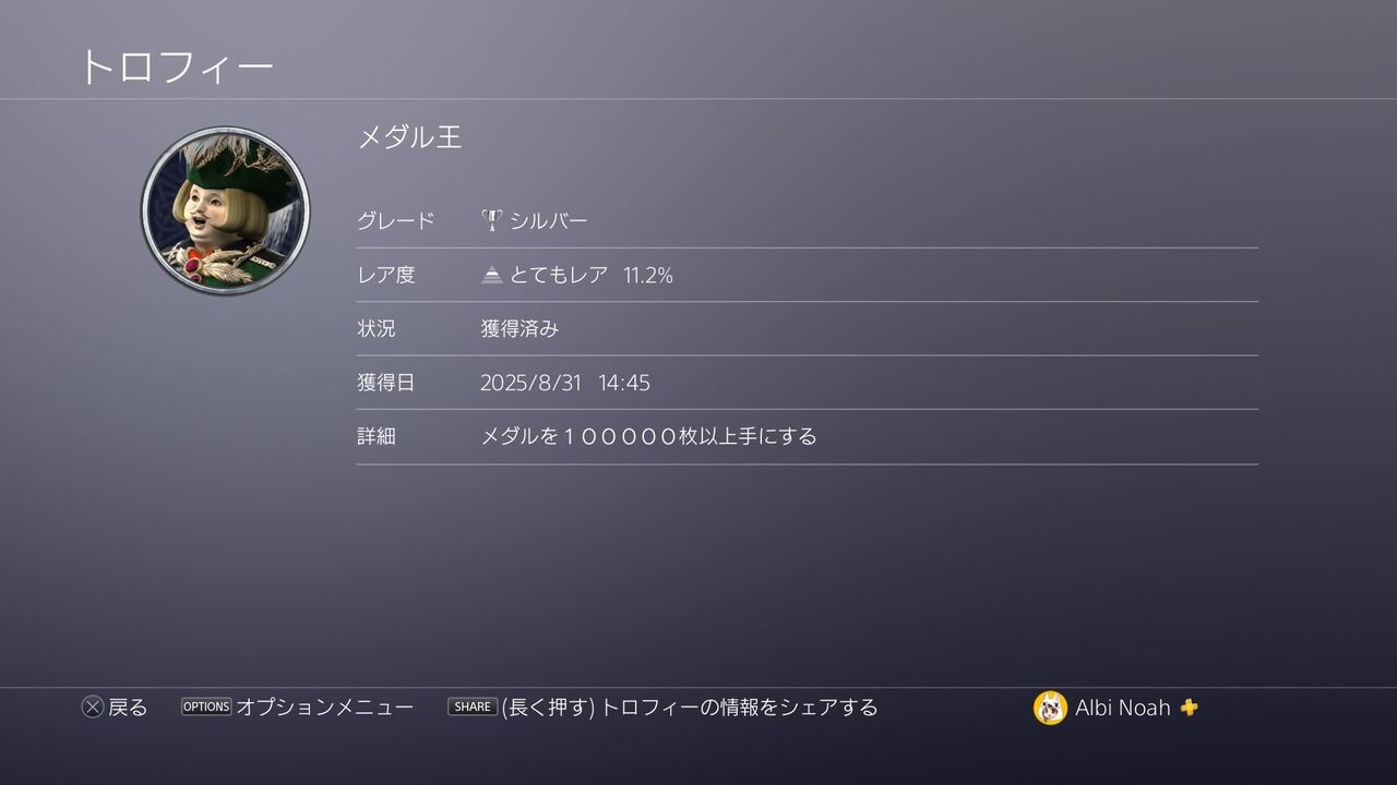 メダルを集めるトロフィーが取れると、特に使い道がなくなるので、嫌でも貯まっていく。