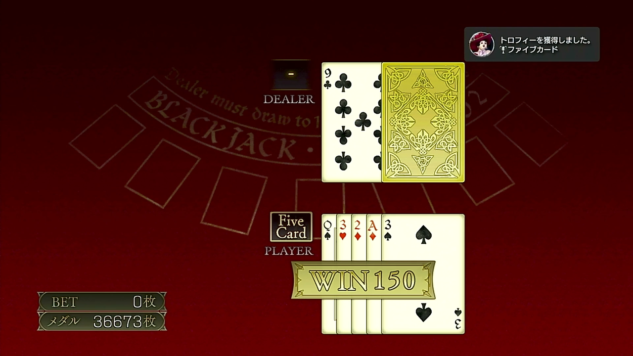フゴーの館にて行えるブラックジャックで、カードの数の合計が21になる前に手札を5枚にすることで獲得できる。