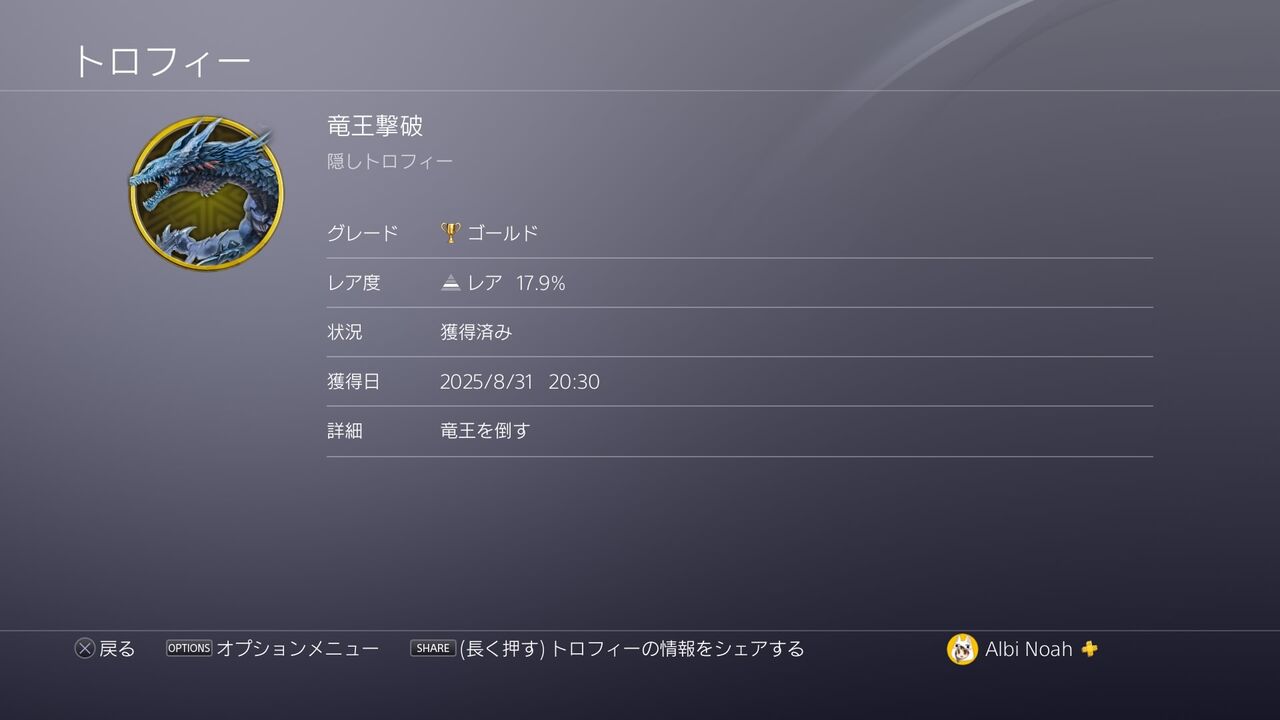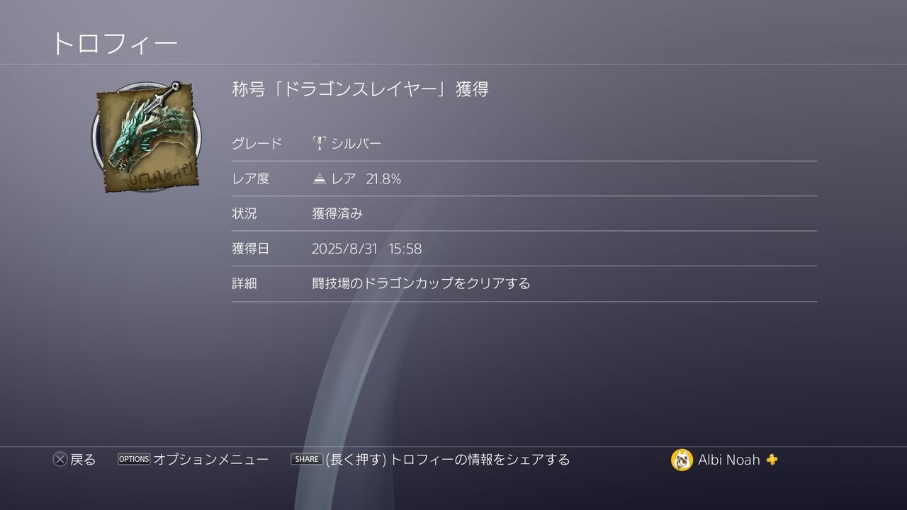 ・称号「ドラゴンスレイヤー」確認(シルバー)