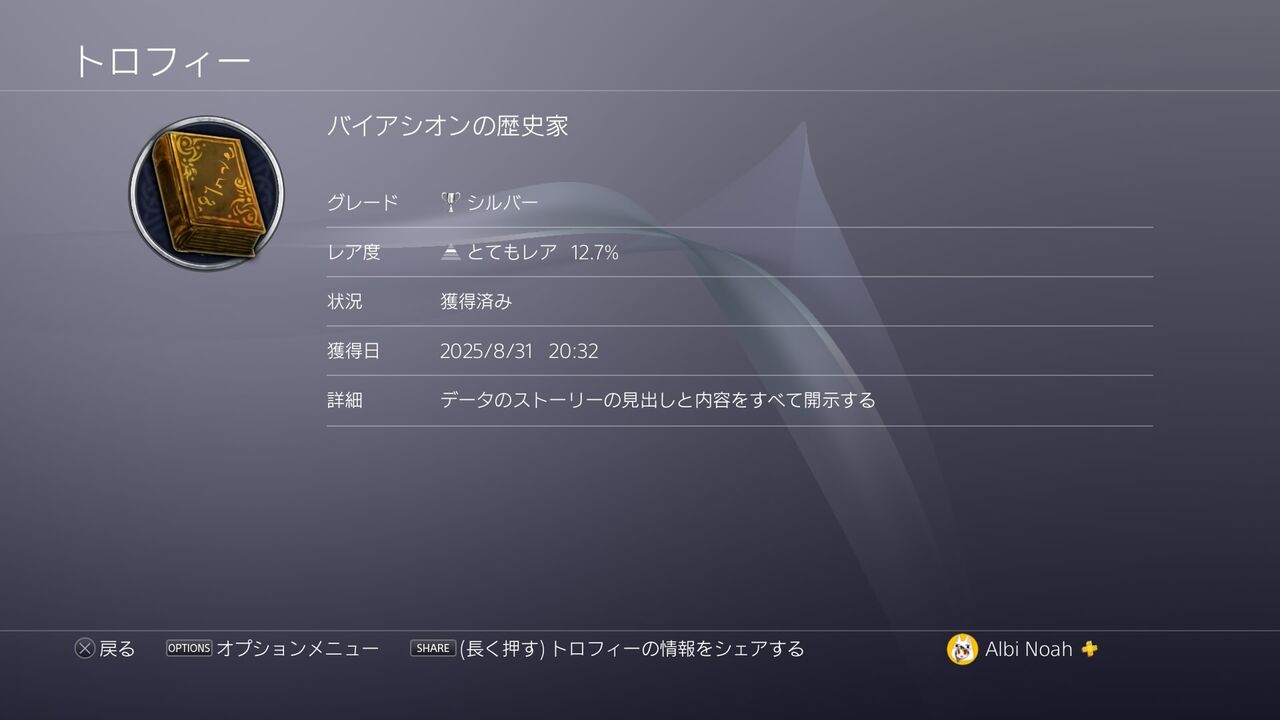 トロフィー面では、ストーリーのリストを全て埋めることを注意していきたい。