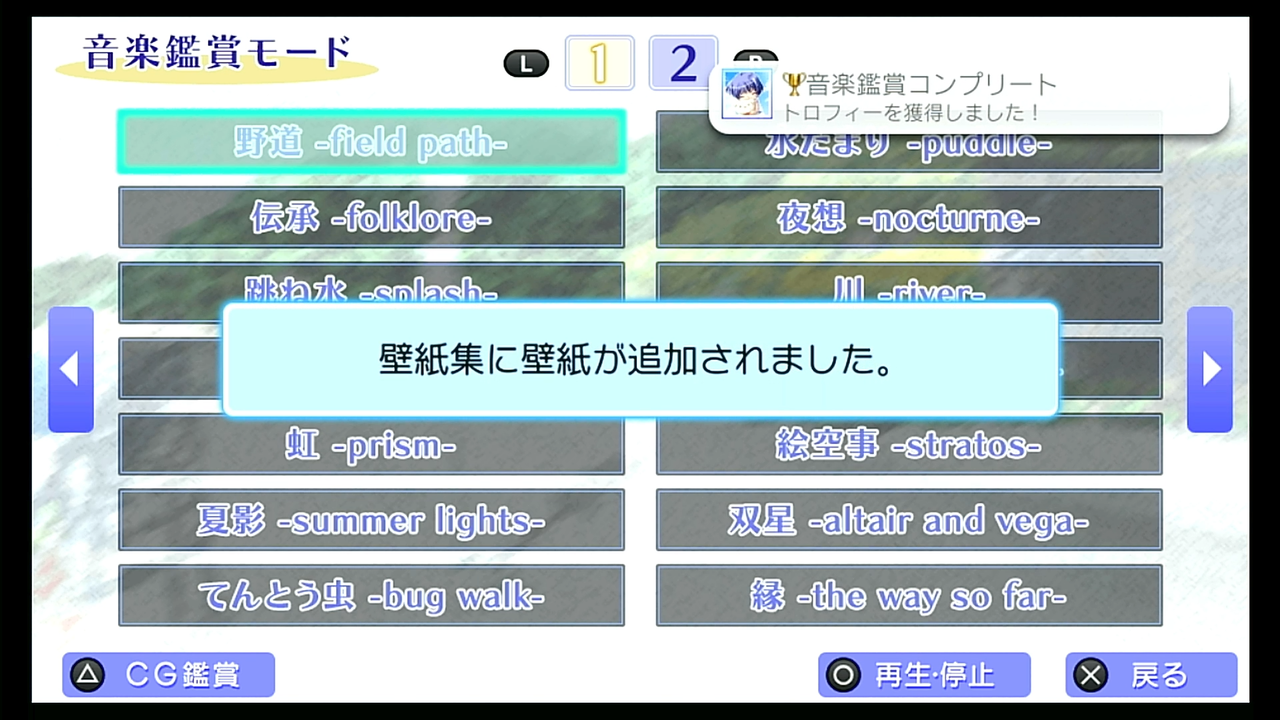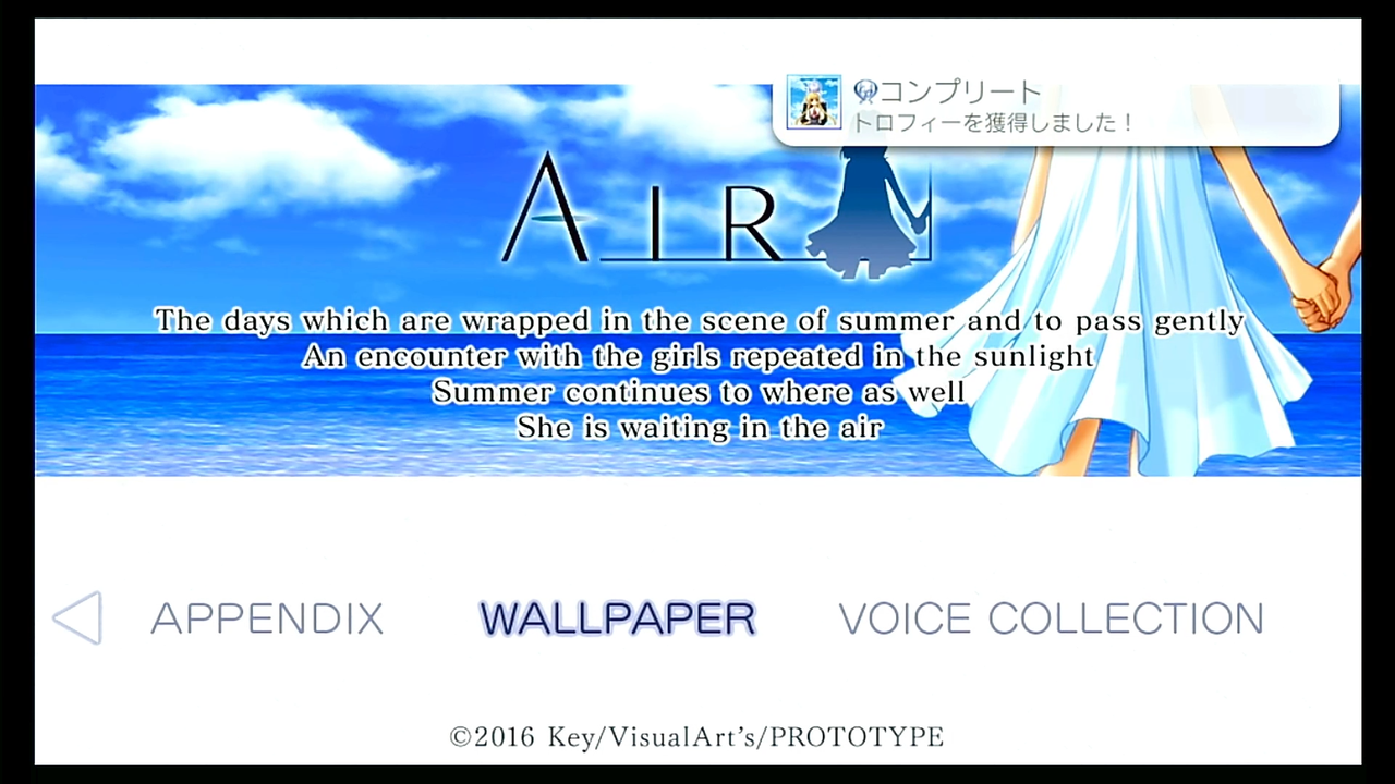 安定でKey作品は絵柄が人選ぶよなぁと思いながらも、内容よく分かってない状態でも聞いただけで涙出そうになる神BGMあってビビった。