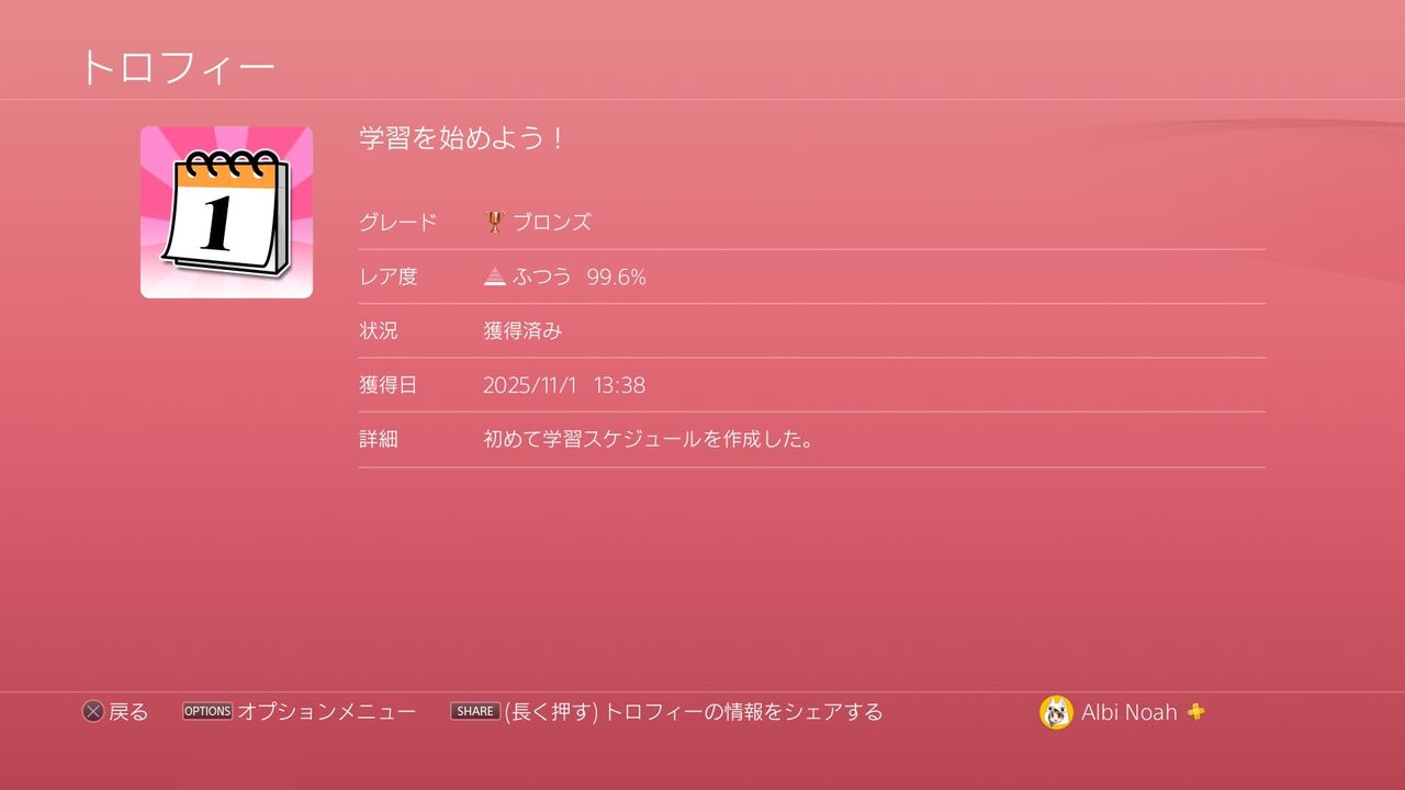 今日の学習で全問正解することで1枚もらえる「今日の学習メダル」を10枚集めることで獲得できます。