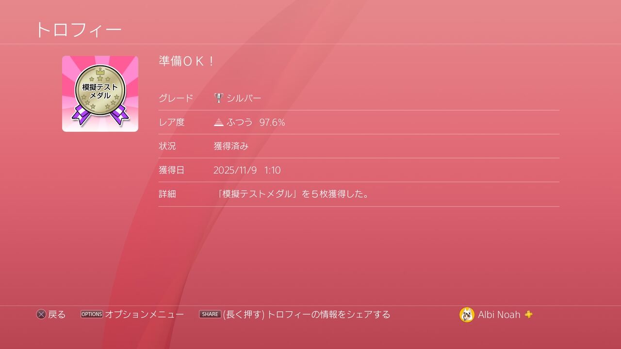 模擬テストを行い、8割以上点数を取ることで模擬テストメダルを1枚獲得できます。